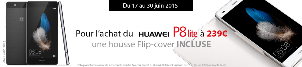 A noter, du 17 au 30 juin 2015, pour l’achat d’un Huaweï P8 Lite, une housse flip-cover est offerte.