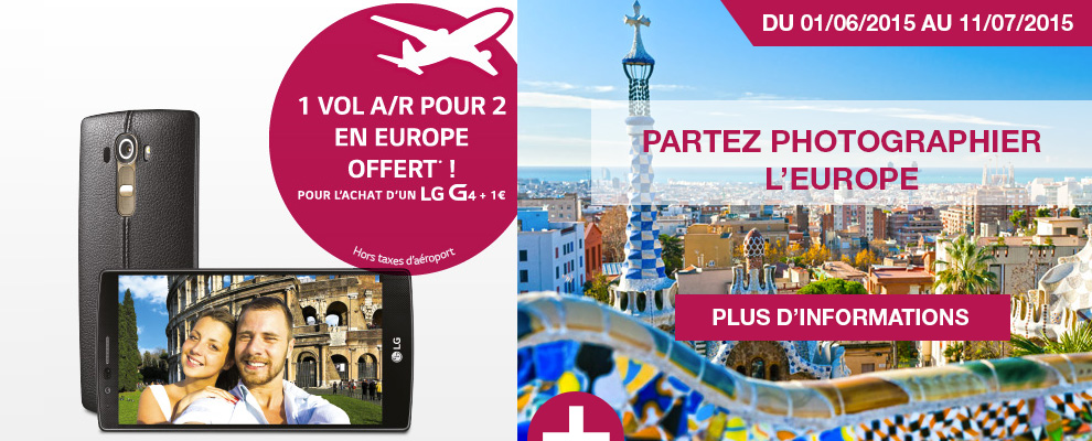 Mais l’offre la plus intéressante reste le vol en Europe offert pour l’achat d’un LG G4. Offre arrivant à temps pour pouvoir partir à l’étranger durant les vacances qui se rapprochent de plus en plus. Tous les détails sur cette page.