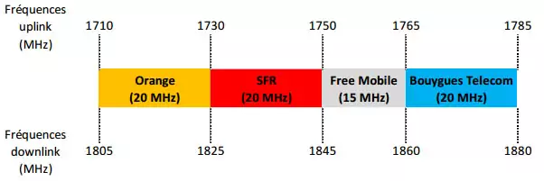 Ces orientations visaient notamment à assurer une répartition équilibrée, entre les quatre opérateurs mobiles 4G, des fréquences de la bande, grâce à des restitutions de fréquences de la part d’Orange, SFR et Bouygues Telecom au bénéfice de la société Free Mobile, dernier entrant sur le marché. In fine, 15 MHz duplex ont été attribués dans cette bande à Free Mobile.