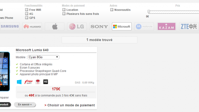 Tout n’est pas perdu pour les fans de Windows Phone, puisque Free Mobile propose toujours le Microsoft Lumia 640 (les Nokia Lumia 535 et 735 ayant déjà tiré leur révérence le 23 mai 2015, tout comme le Nokia Lumia 830 depuis le 1 juillet 2015).
