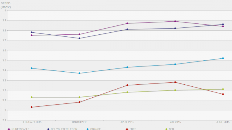 Comme chaque mois, Netflix publie son ISP Speed Index, qui mesure la vitesse moyenne de ses flux selon les pays et les opérateurs. Et durant le mois juin, Free a repris la dernière place. Avec un débit moyen de 3,16 Mbits/s il repasse ainsi SFR avec un débit moyen de 3,21 Mbits/s. Bouygues Télécom, de son coté, prend la première place, avec un débit de 3,86 Mbits/s