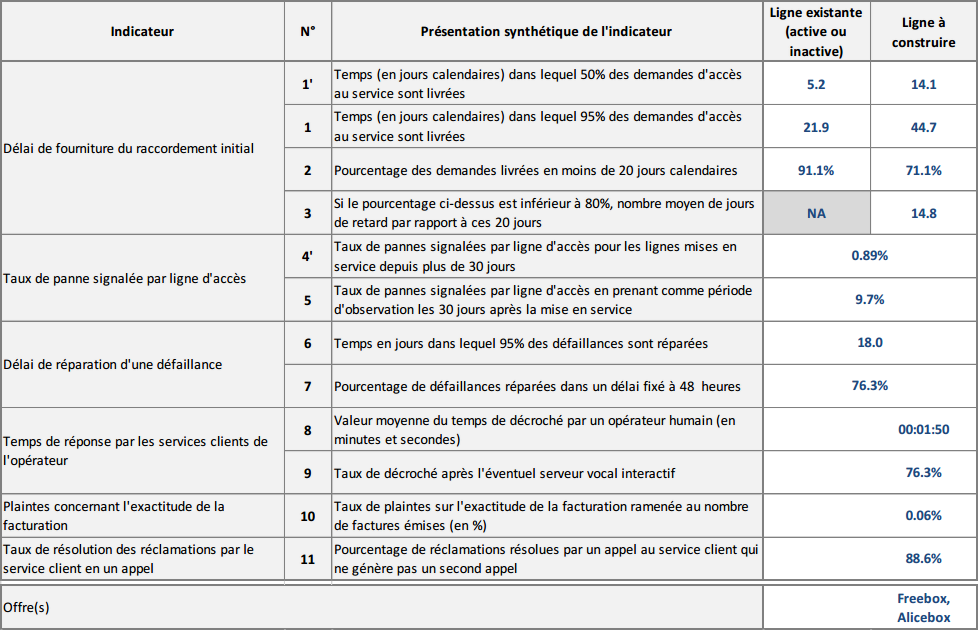 Offres Freebox et Alicebox : Indicateurs trimestriels de qualité de service xDSL
