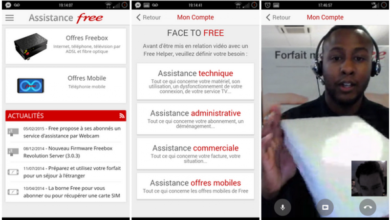 Pour rappel, l’application « Assistance Free – Face to Free » permet aux Freenautes d’accéder facilement à l’assistance en ligne Free, pour leur offre Freebox et mobile. Elle offre également accès au service d’assistance par visioconférence intitulé Face to Free. Celui-ci permet de contacter très facilement et gratuitement un FreeHelper, qui répondra à l’aide de sa webcam à vos demandes sur la Freebox ou sur les offres mobiles de Free (vous pouvez retrouver un test complet de Face to Free en consultant cet article).
