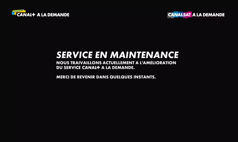 Canal+ annonce une nouvelle maintenance de tous ses services à la demande cette nuit, de 1h00 à 9h00 du matin. Cela concerne Canal+ à la demande, Canalsat à la demande, Canalplay et également l’application myCanal qui permet d’accéder aux contenus de Canalsat/Canal+ en mobilité.