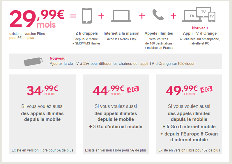 Les 5€ remboursés par l’opérateur seront rapidement oubliés puisqu’il faut ajouter 5€/mois pour bénéficier d’un décodeur TV, ou encore 5€/mois pour profiter de la version Fibre.