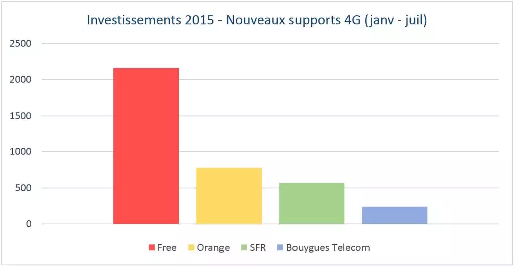 Hier, l’ANFR publiait les chiffres de déploiement de sites 2G/3G/4G pour chaque opérateur de réseau. Et comme tous les mois depuis le début de l’année, c’est Free Mobile qui compte les plus de nouveaux supportx 4G. L’opérateur a déjà largement dépassé SFR Numéricâble en nombre de supports 4G, et fait maintenant la course pour tenter de rattraper le 2ème, Bouygues Télécom, qui compte sur son avance mais qui fait presque du sur place depuis le début de l’année.