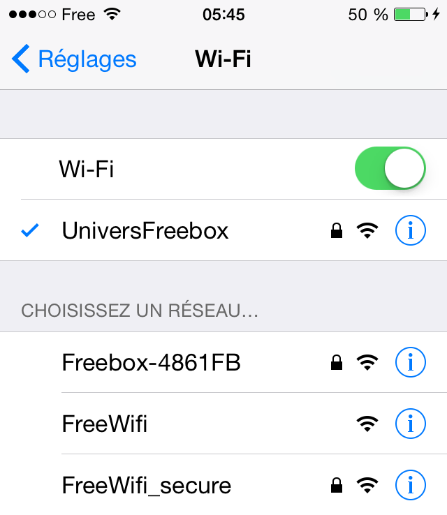 1. Pour commencer, assurez-vous que votre terminal iOS est connecté au réseau WiFi de la Freebox.