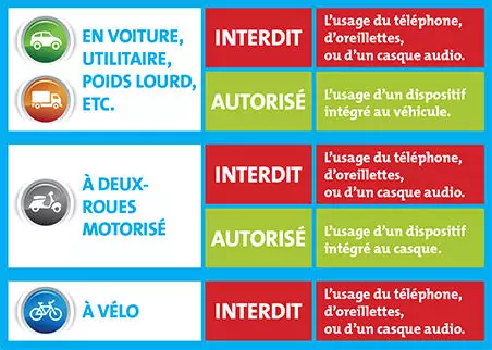 L’interdiction ne concerne pas seulement la conversation téléphonique mais également la musique et la radio, dès lors qu’elles transitent par un dispositif en contact avec les oreilles. Ce décret vient compléter l’interdiction en vigueur de tenir un téléphone en main en conduisant.