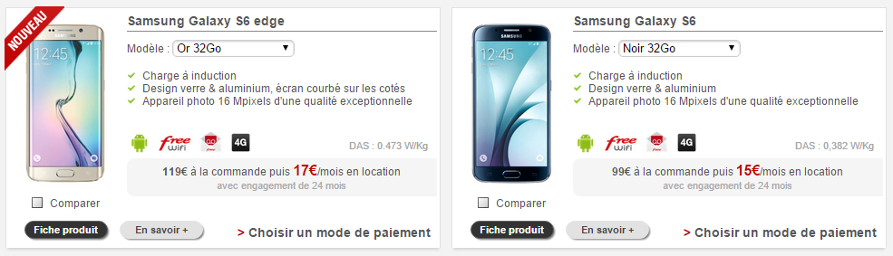 Nous vous l’annoncions, Free a lancé les précommandes du Samsung Galaxy S6 Edge+, tout en ajoutant une nouvelle déclinaison du Galaxy Grand Prime VE sur sa boutique en ligne. Aussi, d’autres évolutions sont à constater au niveau des loyers mensuels et des prix à la commande dans le cadre des offres de location de mobiles. L’ensemble des tarifs a été modifié.