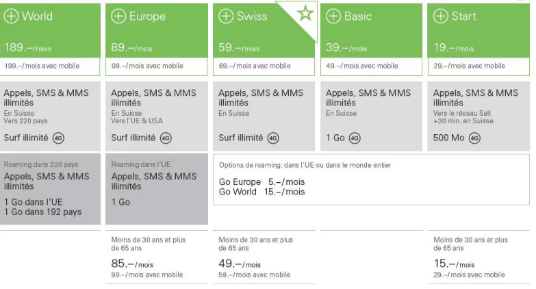 Tous les abonnements «Plus» incluent les services uniques de Salt comme la garantie-retour de 6 semaines, WiFi-Calling, la vitesse maximale 4G+ et offrent la possibilité d’inclure l’option Multi-surf. Salt annonce également qu’il est le premier en Suisse à lancer un abonnement avec appels, SMS et MMS illimités couvrant 220 pays.