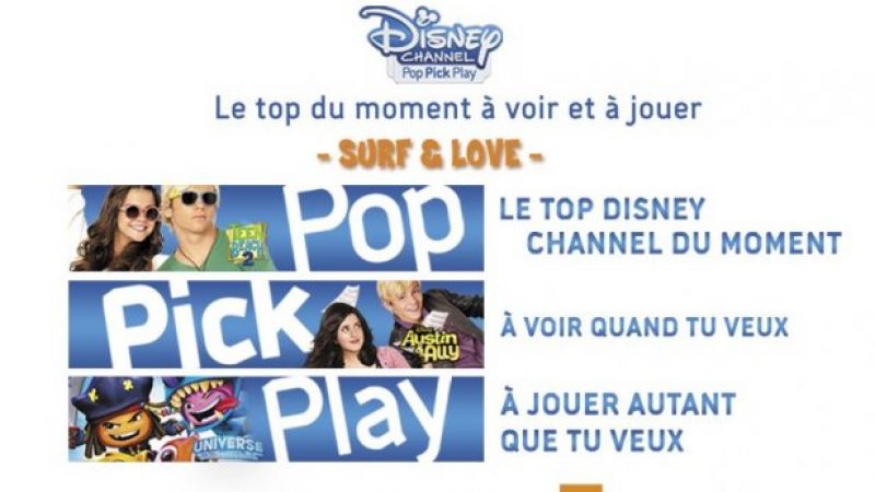 Orange a annoncé le lancement, uniquement sur son offre TV, d’un tout nouveau service de programmes à la demande Disney Channel Pop Pick Play. Chaque trimestre, ce service accessible depuis la mosaïque TV à la demande, et inclus dans le bouquet Famille Max (en option à 10€ par mois), propose des rendez-vous autour de trois rubriques :