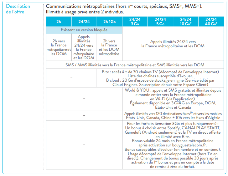 Pour les enveloppes Internet 10 Go et 40 Go, la data doit être utiliser en France et, dans la limite de la moitié de cette enveloppe, dans le reste de l’Europe et les DOM (au-delà, facturation au tarif en vigueur).