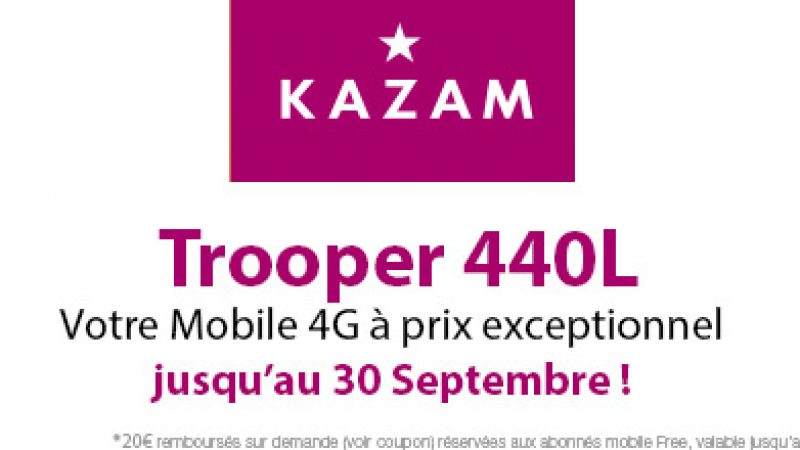 Le Kazam Trooper 440L est un smartphone 4G (cat.4) qui avait déjà été présenté en février dernier. Le dernier modèle proposé par Free, depuis la mi-août, était une version survitaminée avec 1 Go de RAM et 8 Go de ROM (au lieu de 512 Mo et 4 Go chez les autres vendeurs).