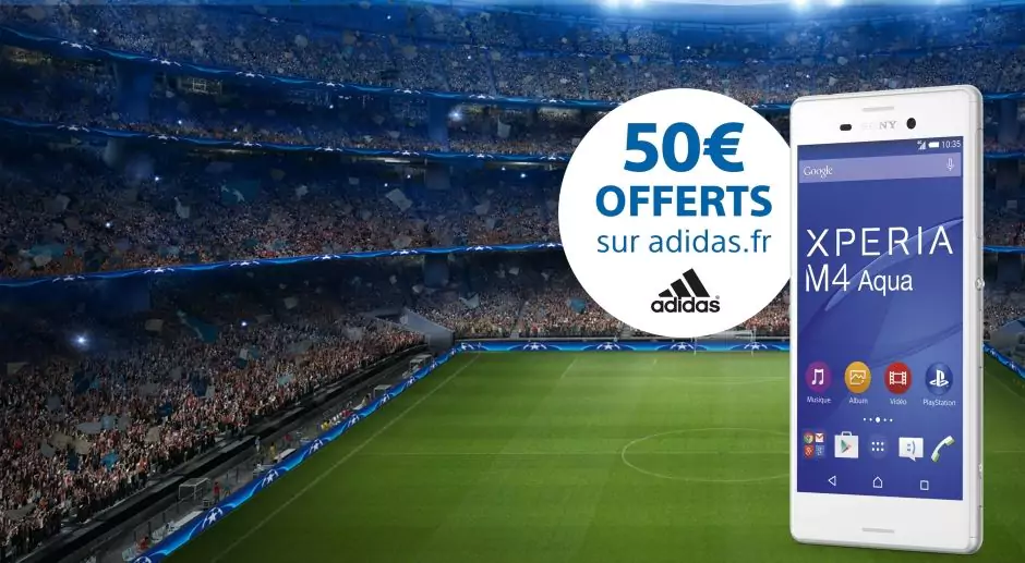 Du 26 août au 30 septembre, Sony, partenaire de l’UEFA Champions League, offre 50€ pour tout achat d’un smartphone Xperia M4 Aqua.