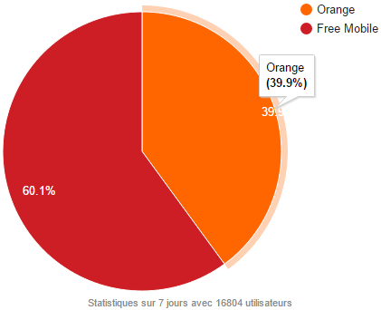 Cette semaine, la tendance se confirme. En passant sous la barre des 40%, le nombre de connexions passées en itinérance sur le réseau Orange continue de diminuer. Désormais, près de 60.1 % des connexions testées par l’outil Free Mobile Netstat sont réalisées sur le réseau mobile de Free (contre 58.6% la semaine dernière). Ces résultats ont été obtenus auprès de 16 804 utilisateurs sur une période de 7 jours.
