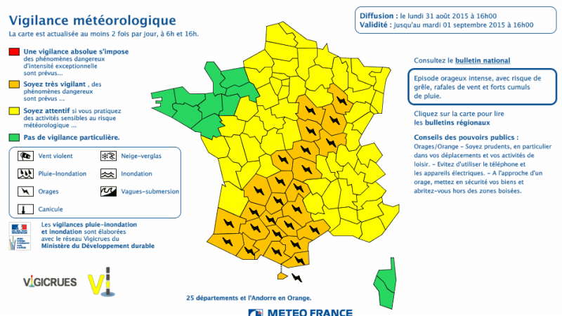 Nous ne vous le dirons jamais assez, gare aux box lorsque le mauvais temps approche, et particulièrement lorsqu’il y a des orages. Météo France a placé en vigilance de nombreux départements. Le phénomène est prévu jusqu’au mardi 01 septembre 2015, 10h00.