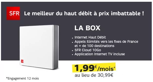 Box SFR ADSL à 1,99€/mois pendant 1 an (puis 30,99€/mois) – engagement de 12 mois :