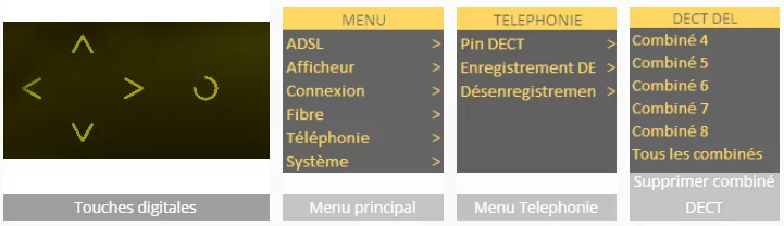 NB : La compatibilité DECT offre le service de téléphonie fixe aux différents combinés DECT (jusqu’à 8 combinés) sans besoin de les relier au Server (permettant ainsi de disposer de plusieurs téléphones à la maison).