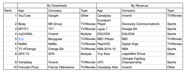 App Annie, la plus grande plateforme de données de marché en matière d’applications mobiles, vient de publier un rapport concernant les applications mobiles de streaming vidéo. Concernant la France, les applications des FAI qui proposentun service de TV en streaming se retrouvent bien placées. On retrouve ainsi Btv de Bouygues Télécom en 5ème position, au dessus de Netflix, TV d’Orange en 7ème position, et SFR TV en 8eme.