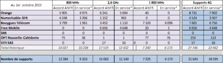 Le bilan des sites 4G mis en service en métropole s’établit comme suit selon l’ANFR :