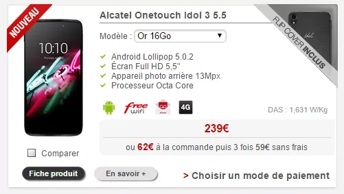 Le plus plus du moment : un flip cover est offert jusqu’à demain pour l’achat d’un One Touch Idol 3.