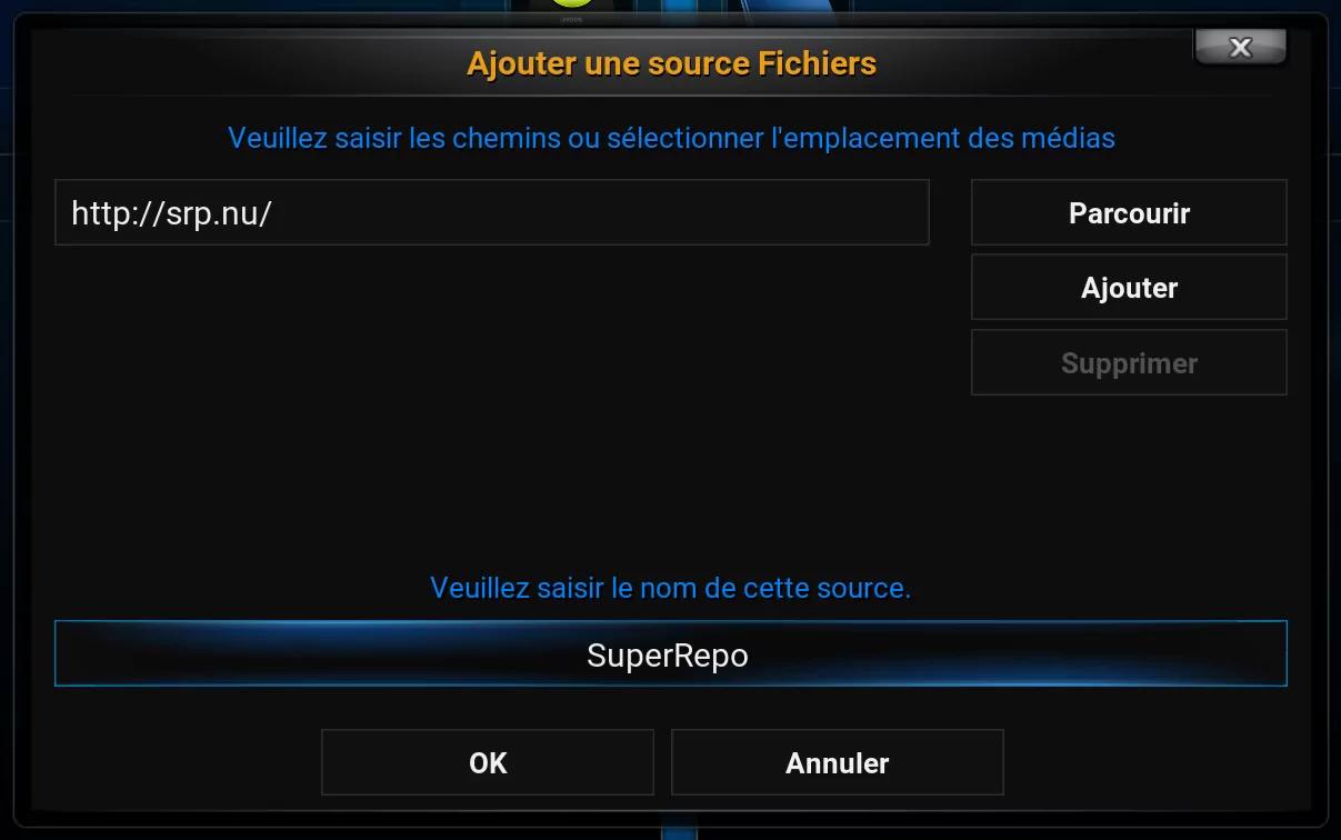 Pour installer Super Repository il suffit d’allez dans "Système>fichier>ajouter sources". Il faudra rentrer l’url "http://srp.nu" dans le premier champ et donner un nom au dépôt dans le second (ici SuperRepo) et de valider.