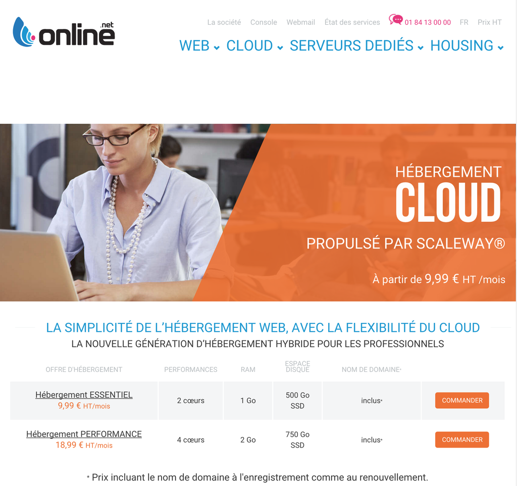 Aussi, pour accompagner ce nouveau site, Online propose de nouvelles offres d’hébergement "Cloud" qui viennent compléter la gamme d’hébergement "Web". Les infrastructures autrefois très bien adaptées à des sites Internet vitrine (Principalement des sites Internet statiques), ne le sont plus du tout pour les applications métiers gourmandes d’aujourd’hui explique Online.