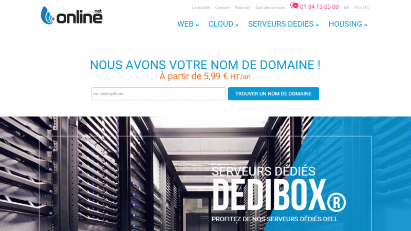 Online a dévoilé son nouveau site internet. Ce dernier regroupe l’ensemble des offres de la filiale d’hébergement du groupe Iliad. La barre supérieure permet d’accéder à toutes les offres dédiées. Nom de domaine, hébergement Web ou Cloud, serveurs dédiés, espace dédié à l’assistance, ou encore l’accès réservé aux abonnés.