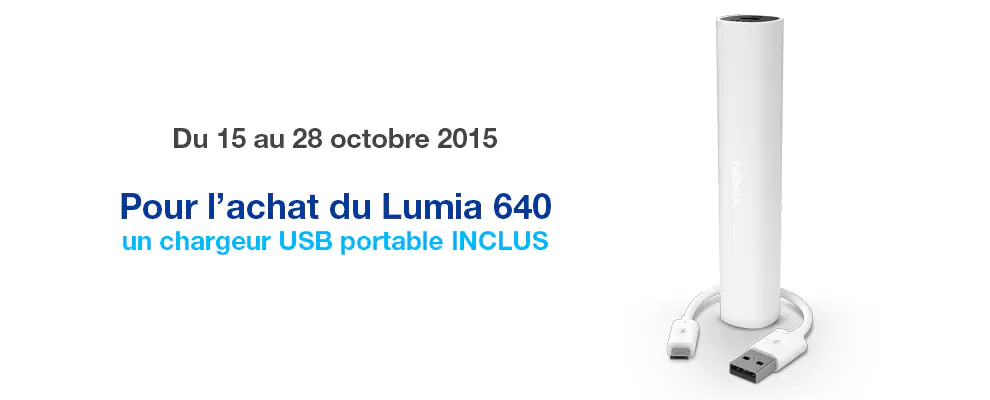 De nouvelles offres "accessoires offerts" sont disponibles sur la boutique Free Mobile. Pour tout achat d’un Microsoft Lumia 640, un chargeur USB portable est offert (le chargeur sera blanc si vous achetez un Lumia noir. Il sera de couleur Cyan si vous optez pour le modèle cyan).