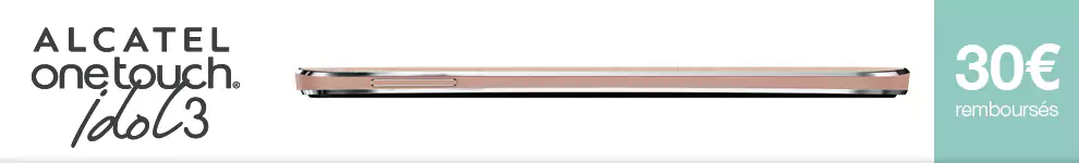 Nouveau : Jusqu’au 30 novembre 2015, 30€ remboursés pour tout achat d’un Alcatel OneTouch IDOL 3 sur la boutique mobile de Free, soit 209€ ODR déduite. Prêt pour la 4G (cat.4 jusqu’à 150 Mb/s en réception), l’IDOL 3 est disponible au tarif de 239€. Le formulaire de remboursement pour est ici.