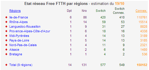 En début d’année, Free franchissait enfin le cap des 100 000 abonnés FTTH. Mais s’il a mis un peu plus de 8 ans pour arriver à ce chiffre, depuis les choses se sont accélérées et l’opérateur raccorde plus de 5000 nouveaux abonnés FTTH par mois en moyenne (près de 7000 juste sur le mois d’octobre). Avec cette augmentation de la cadence, Free vient de franchir le cap des 150 000 abonnés, selon les estimations de francois04, soit environ 50 000 de plus en 10 mois.