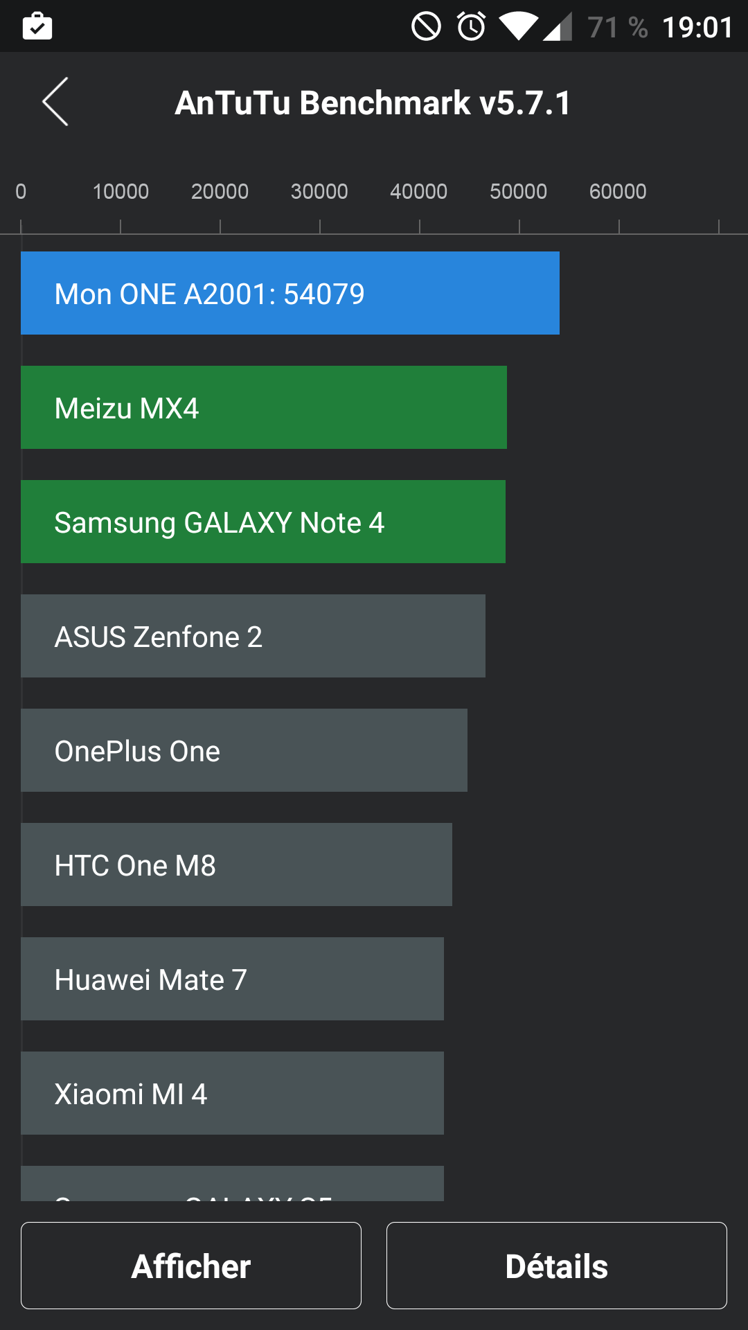 Résultat des courses, avec 54 079 points, le OnePlus2 se classe très bien par rapport à la concurrence, même face à d’autres smartphones plus chers :