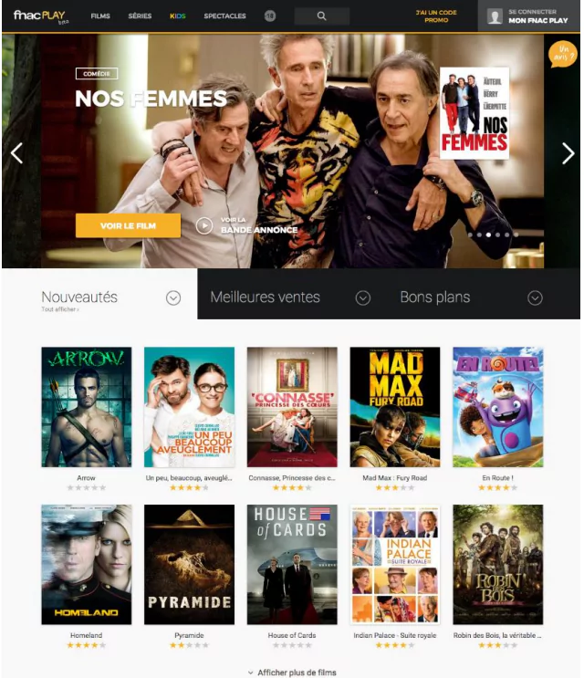 La FNAC annonce que le catalogue propose des milliers de films issus de tous les plus grands studios : blockbusters, grand classiques français et étrangers, cinéma indépendant, jeunesse… Les meilleures séries du moment sont quant à elles 24H après la diffusion US (disponible fin octobre)