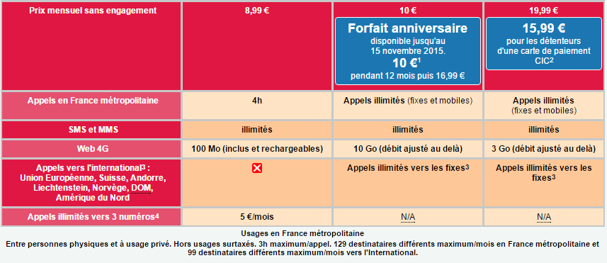 Comme pour NRJ Mobile, l’offre promotionnelle est disponible jusqu’au 15 novembre prochain. Cette dernière rencontre actuellement quelques difficultés dans la validation des pièces justificatives et l’envoi des commandes, suite à « un important succès ».