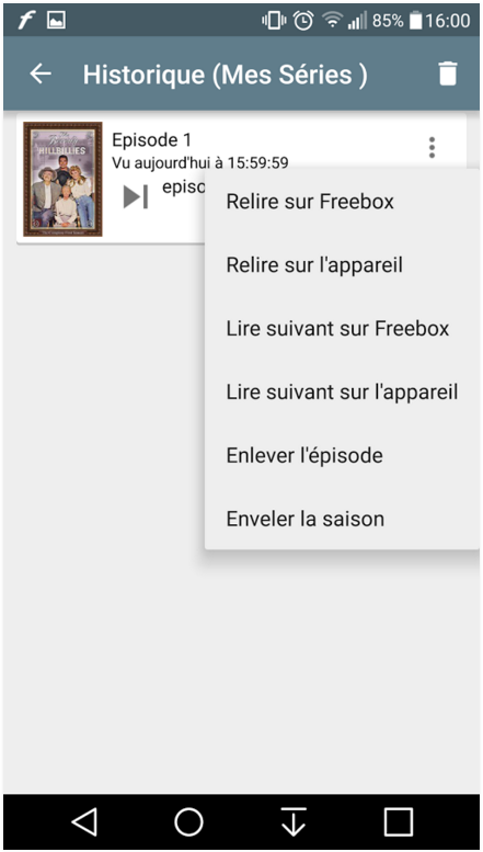 Pour les séries, un historique permet de rapidement voir quel épisode a été vu en dernier, et de lancer directement le suivant. L’application propose également une recherche par nom, le tri par nom/date/durée et le filtre par genre.