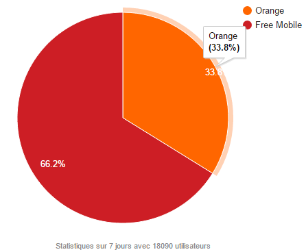 En passant de 35.4% à 33.8%, c’est la douche froide pour le temps de connexion sur l’itinérance Orange. Celui-ci perd 1.6 point au profit du réseau mobile de Free. Ces résultats ont été obtenus sur 7 jours auprès des 18 090 utilisateurs de l’application.