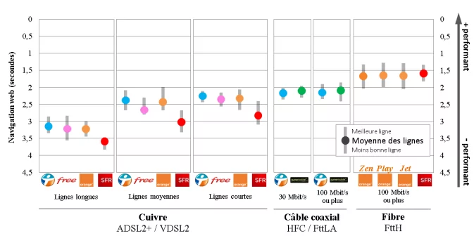 Les mesures ont été effectuées sur trois à six lignes par catégorie d’accès, réparties sur neuf sites en France métropolitaine, dans des conditions permettant de s’affranchir d’un grand nombre de biais.