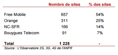 Sites 4G mis en service par les opérateurs sur la 3ème trimestre 2015