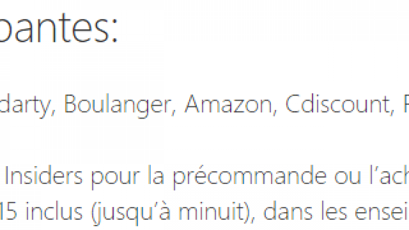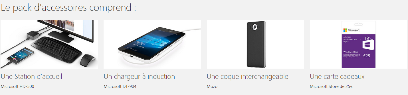 L’offre promotionnelle est réservée aux Windows Insiders pour la précommande ou l’achat d’un smartphone Microsoft Lumia 950 ou Lumia 950 XL entre le 12 novembre 2015 et le 06 décembre 2015 inclus (jusqu’à minuit), dans les enseignes participant à l’opération. Elle permet d’obtenir un chargeur à induction DT-904, une station d’accueil HD-500, une coque interchangeable et une carte cadeau de 25€ (environ 250€ de cadeaux au total).