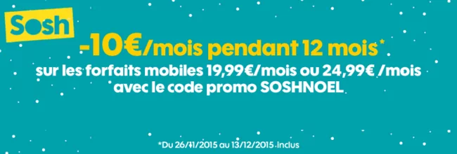 Les opérations autour des fêtes de fin d’années se multiplient. Après, Prixtel, Virgin Mobile ou RED, Sosh, l’opérateur low-cost du groupe Orange, annonce une remise de 10€/mois sur les forfaits 3Go à 19.99€/mois et 5Go à 24.99€/mois.