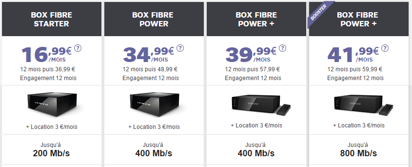 Pour les particuliers, le prix de l’abonnement mensuel débute à 41,99€/mois pendant 12 mois puis 59,99 € (engagement 12 mois). Il faut en effet souscrire à l’offre Box Fibre Power+ pour bénéficier de ce débit.