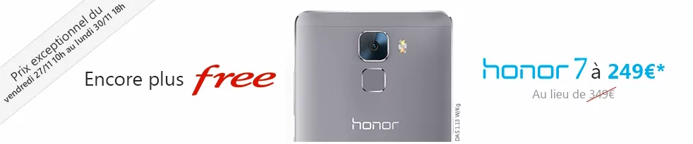 Jusqu’au 30 novembre à 18h, le Honor 7 (Gris ou Argent 16 Go) est disponible pour 249€ au lieu de 349€ (dont 50€ sous forme d’ODR).