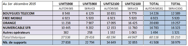 L’ANFR vient de publier son Observatoire du déploiement mobile pour le mois de novembre. Au 1er décembre 2015, 22 703 sites sont autorisés, dont 19 532 en service, pour la téléphonie mobile très haut débit (4G) tous opérateurs confondus.