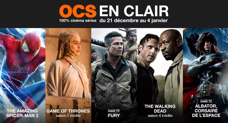 Durant cette période de gratuité, vous pourrez retrouver les films « The Amazing Spiderman 2 », « Albator, corsaire de l’espace », « Fury », ou encore la saison 5 de « Game of Thrones » et la saison 6 de « Walking Dead »