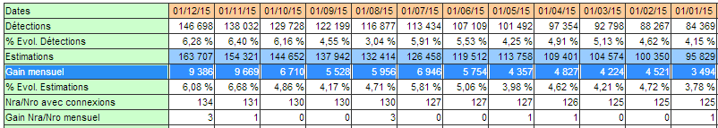 Surtout, la cadence mensuelle augmente. L’année dernière et en début d’année Free raccordait en FTTH environ 4000 abonnés par mois, et ce chiffre a progressivement augmenté pour arriver à plus de 9000 par mois en octobre et en novembre (9 386 pour le mois de novembre) toujours selon les estimations de François04. Un chiffre qui devrait encore augmenter dès que Free raccordera des abonnés dans les zones AMII (cofinancées avec Orange)