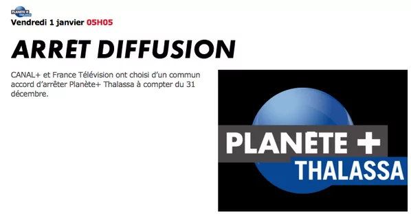 Et les choses ne semblent pas s’arranger puisqu’une chaîne documentaire va disparaitre à la fin du mois. En effet, ainsi que le rapporte TeleCable Sat Hebdo, Planète Thalassa cessera d’émettre le 31 décembre, Canal+ et France Télévisions ayant choisi en commun de stopper la chaîne.