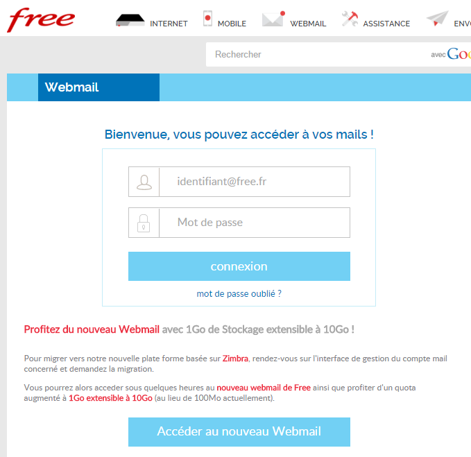 Free a procédé à une petite mise à jour, de la page d’authentification du webmail IMP. L’évolution n’est que graphique et la page arbore dorénavant la même charte graphique que le reste du site de Free.