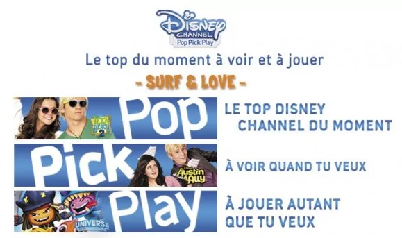 Après Orange en aout dernier, c’est au tour de SFR de reprendre le service Disney Channel Pop Pick Play, qui est maintenant accessible à tous les clients Power et Power+. Disponible en télévision à la demande, Disney Channel Pop Pick Play est une offre complète et ludique de contenus Disney Channel regroupés autour de 3 rubriques :
