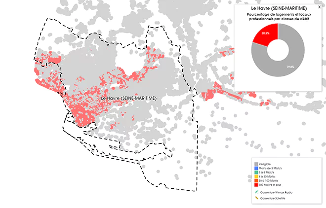 Aujourd’hui, grâce aux données fournis par l’Observatoire France Très Haut Débit, nous vous proposons de découvrir le déploiement du très haut débit pour tous les opérateurs sur Le Havre, 13ième ville de France par sa population.