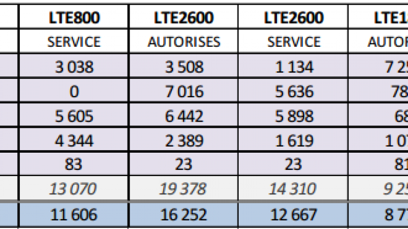 A noter également le déploiement des fréquences 1800MHz qui accélère chez Free, avec 121 antennes supplémentaires pour un total de 156 antennes.